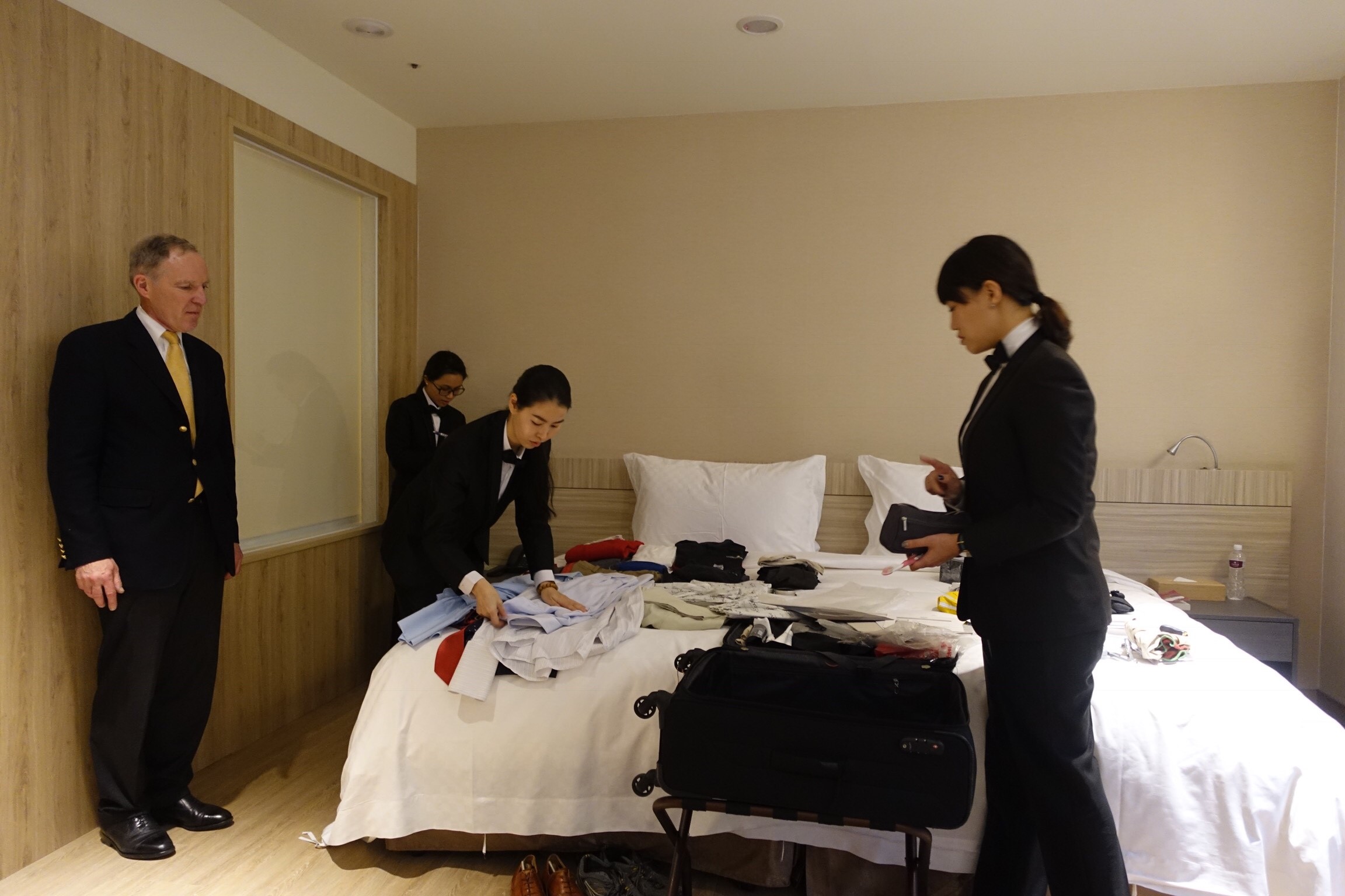 安捷國際酒店為了體現「國際管家」的服務精神,提供以飯店為家的商務人士,體貼入微的服務,甫於試營運期間即引進英國管家協會(UK Butler Guild)的英式管家課程,由Hugo Mechelse 講師進行為期五天的培訓。本次培訓課程學員中,除了AJ HOTEL現場的服務人員,尚有來自豪宅物業的主管、餐旅學系的講師、觀光科系的碩士生、退役空少、調酒師與來自中國的服務業培訓主管,來自各行業的學員們希望透過此次管家證照培訓課程,學習英國嚴謹且歷史悠久的管家服務精神。